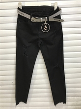 E野视角黑色牛仔裤春夏宽松哈伦裤显瘦垮裤欧洲站破洞女九分裤潮