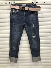 SOOMIL牛仔裤2017春夏显瘦修身直筒裤欧洲站破洞弹力翻边女九分裤