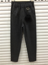 欧洲站呢料加厚休闲裤2016秋冬宽松大码哈伦裤显瘦垮裤灰色女长裤