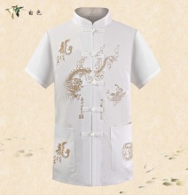 夏季薄款男士短袖衬衫唐装半袖上衣中老年男装立领中式棉爸爸衬衣