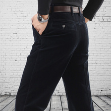冬男士加绒加厚条绒裤中年高腰宽松直筒细条绒纯棉灯芯绒男裤子潮