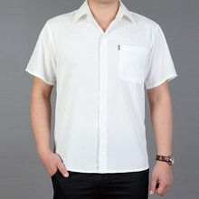 爸爸夏季中老年男士短袖衬衫纯色男装上衣免烫商务半袖衬衣男薄款