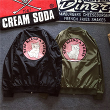 秋季新款欧美男女情侣粉色猫白猫军绿棒球服外套滑板薄款死飞上衣