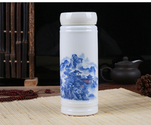 景德镇陶瓷保温杯手绘双层隔隔热全陶瓷内胆水杯青花瓷透明