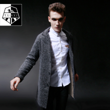 TUNYI秋冬季新款针织风衣男中长款春秋薄款青少年防风外套潮