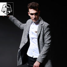 冬季男士毛呢休闲风衣男韩版修身中长款加绒加厚大衣男中长款