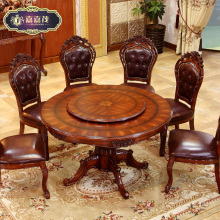 欧式实木餐桌椅组合美式双层带转盘圆形餐台1.5米美式饭桌西餐桌