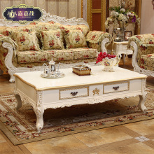 欧式大理石茶几实木雕花带抽屉长茶桌美式客厅家具电视柜组合套装