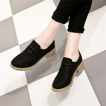 黑色中跟女式单鞋春季2017新款舒适百搭休闲低帮鞋英伦风粗跟女鞋