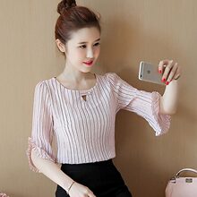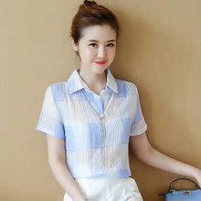 夏装2017新款潮雪纺衬衫T恤女装短袖韩版百搭宽松时尚夏季上衣服
