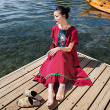 2017春夏季新款原创民族风女装棉麻复古文艺绣花连衣裙中国风长裙