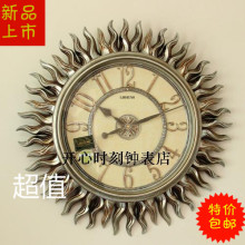 丽盛高档仿古创意田园艺术静音欧式挂钟客厅装饰太阳复古石英钟表