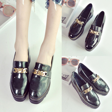 皮扣内增高女鞋松糕鞋春秋2017春厚底英伦风漆皮单鞋方头坡跟高跟