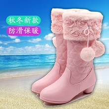 女童韩版靴子2016潮童新款秋冬保暖加绒中大童公主靴高跟靴子防水