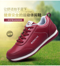 春秋软底皮面防水健康运动休闲鞋妈妈鞋 系带防滑中老年健步鞋