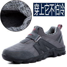 秋冬保暖防滑休闲健步父亲鞋 M字母中老年男子加绒棉鞋厚底运动鞋
