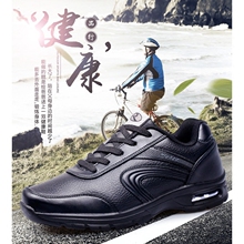 春秋中老年运动休闲鞋防滑气垫男鞋黑色防水皮面爸爸鞋系带健步鞋