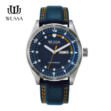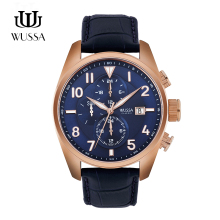 WUSSA舞时夜光多功能男士腕表时尚潮流真皮表带情人节礼物送男友