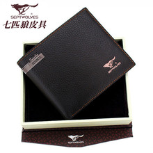 正品七匹狼钱包品牌男士短款真皮钱夹男 头层牛皮皮夹 横款多卡位