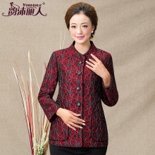 中老年女装春秋款外套大码立领时尚夹克上衣蕾丝妈妈装民族风开衫