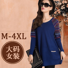 2016秋冬新品大码女装胖妹妹200斤加肥加大长袖套头中长款针织衫9