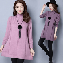 秋冬季新品中长款宽松韩版胖人显瘦高领针织衫套头毛衣打底衫蝙蝠