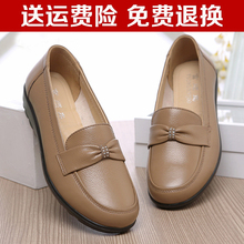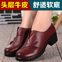 春季真皮浅口中年妇女鞋中跟套脚中老年女单鞋粗跟妈妈皮鞋工作鞋