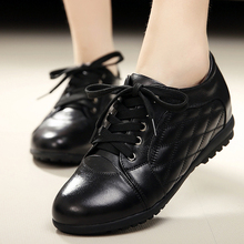 春季真皮系带妈妈鞋内增高中年女单鞋中老年人广场舞鞋平跟妇女鞋
