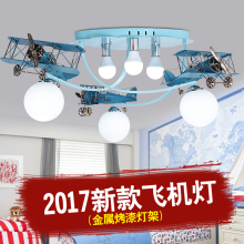 新款 美式乡村儿童房灯铁艺吸顶灯男孩卧室灯具LED创意卡通飞机灯