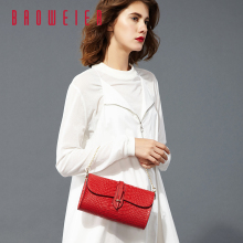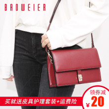 包薇尔2017新款牛皮女包 红色锁扣小方包 时尚单肩斜挎包女士包包