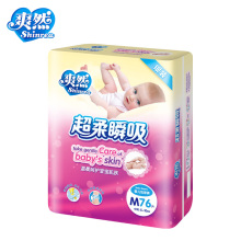 爽然纸尿裤M76片 超柔瞬吸宝宝婴儿纸尿裤干爽透气超薄尿布湿包邮
