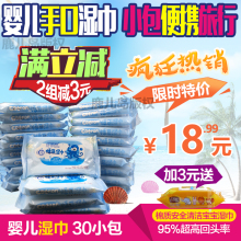 纤雨度清洁润肤婴儿手口湿巾宝宝湿纸巾10片装30小包便携袋装包邮