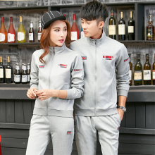 春秋款情侣运动套装男女同款纯棉健身修身跑步开衫卫衣打球运动服