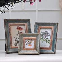 福美林 复古蓝色美式地中海装饰摆件 欧式实木做旧木质相框画框