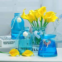 福美林 现代简约田园清新蓝色透明玻璃水培花瓶 装饰花器花插包邮