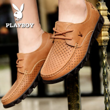 花花公子男鞋夏季男士休闲鞋真皮英伦镂空皮鞋软面皮凉鞋透气鞋子