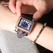 蒂玮娜 韩版时尚大表盘方形手表女 真皮带防水钻表 学生时装女表