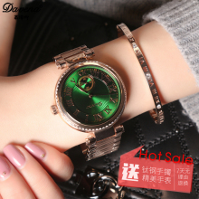 蒂玮娜 时尚不锈钢女手表 大表盘绿水鬼钢带防水钻表学生女表时装
