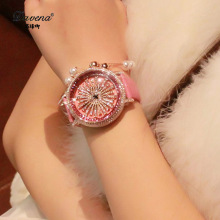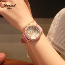 蒂玮娜 新款时尚大表盘女手表 真皮带防水钻表 时装表女表学生表