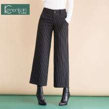阔腿裤女 九分裤竖条纹裤2017春装新款女装高腰宽松休闲裤直筒裤
