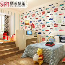 顺美儿童壁纸 无纺布男孩卧室墙纸 卡通小汽车简约环保儿童房墙纸