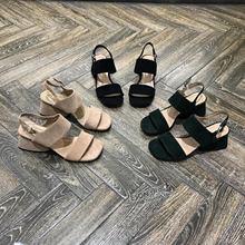 2017夏新品欧货欧洲站真皮女粗跟磨砂皮露趾时尚女人味高跟鞋凉鞋