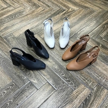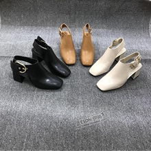 2017春季新款欧货欧洲站真皮女鞋粗跟方头扣带牛皮高跟鞋凉鞋单鞋
