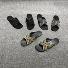 2017夏新款欧货欧洲站真皮女鞋平跟平底水钻露趾时尚一字拖凉拖鞋