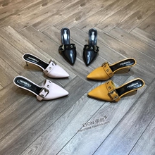 2017夏季新品欧货欧洲站真皮女鞋尖头细跟女人味高跟鞋包头凉拖鞋