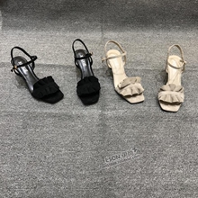 2017夏季新品欧货欧洲站真皮女鞋细跟露趾花边磨砂皮高跟鞋凉鞋潮