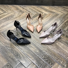 2017夏新品欧货欧洲站真皮女鞋尖头扣带细跟女人味性感高跟鞋凉鞋