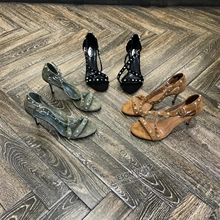 2017夏新款欧货欧洲站真皮女鞋细跟磨砂皮铆钉鱼嘴性感高跟鞋凉鞋