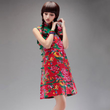 萝素洛神2017夏民族风女装连衣裙改良旗袍裙中国风红色显瘦裙子