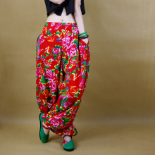 丹凤媚2017夏原创新款民族风女装裤子花松紧腰阔腿裤宽松薄款长裤